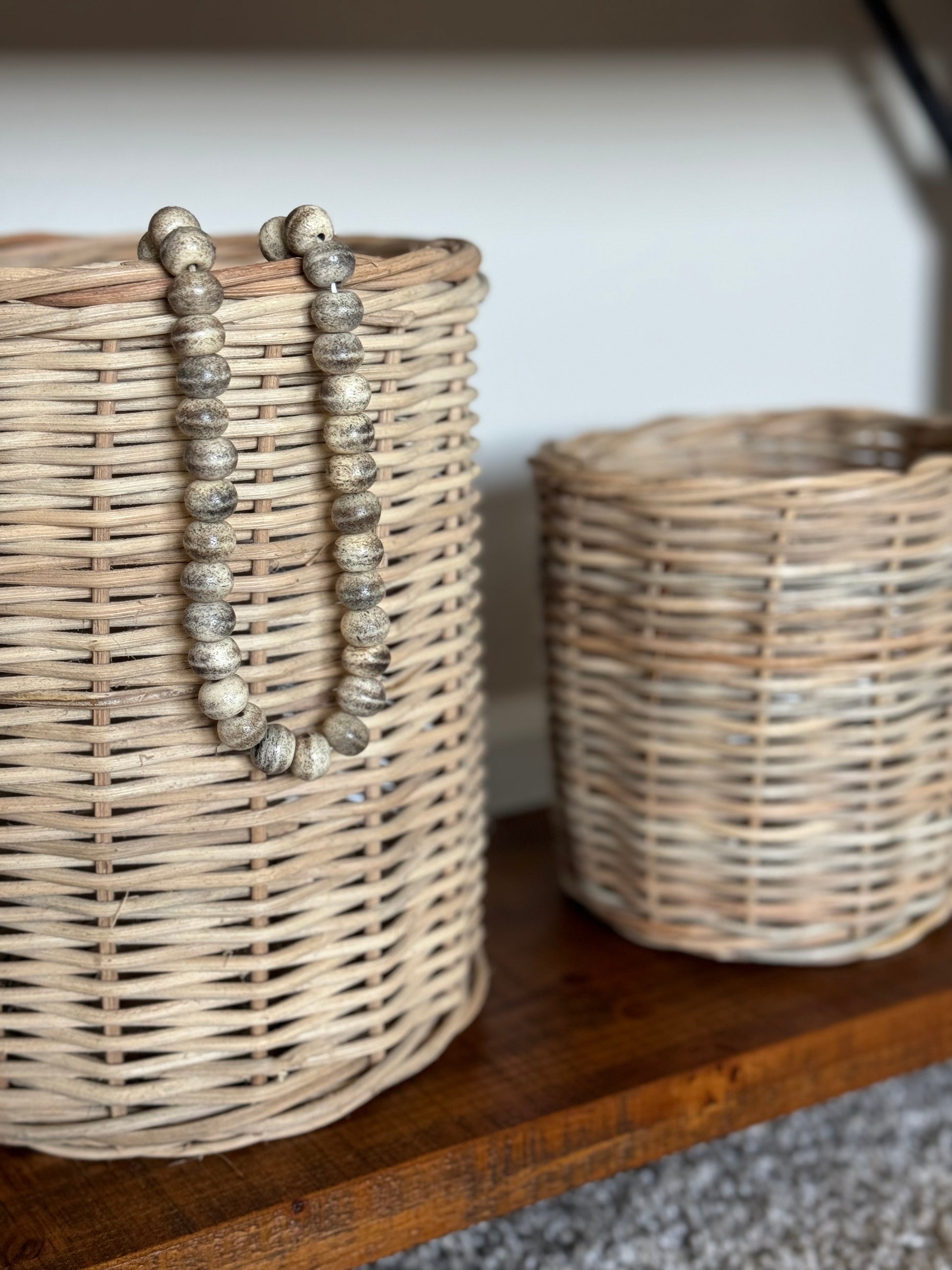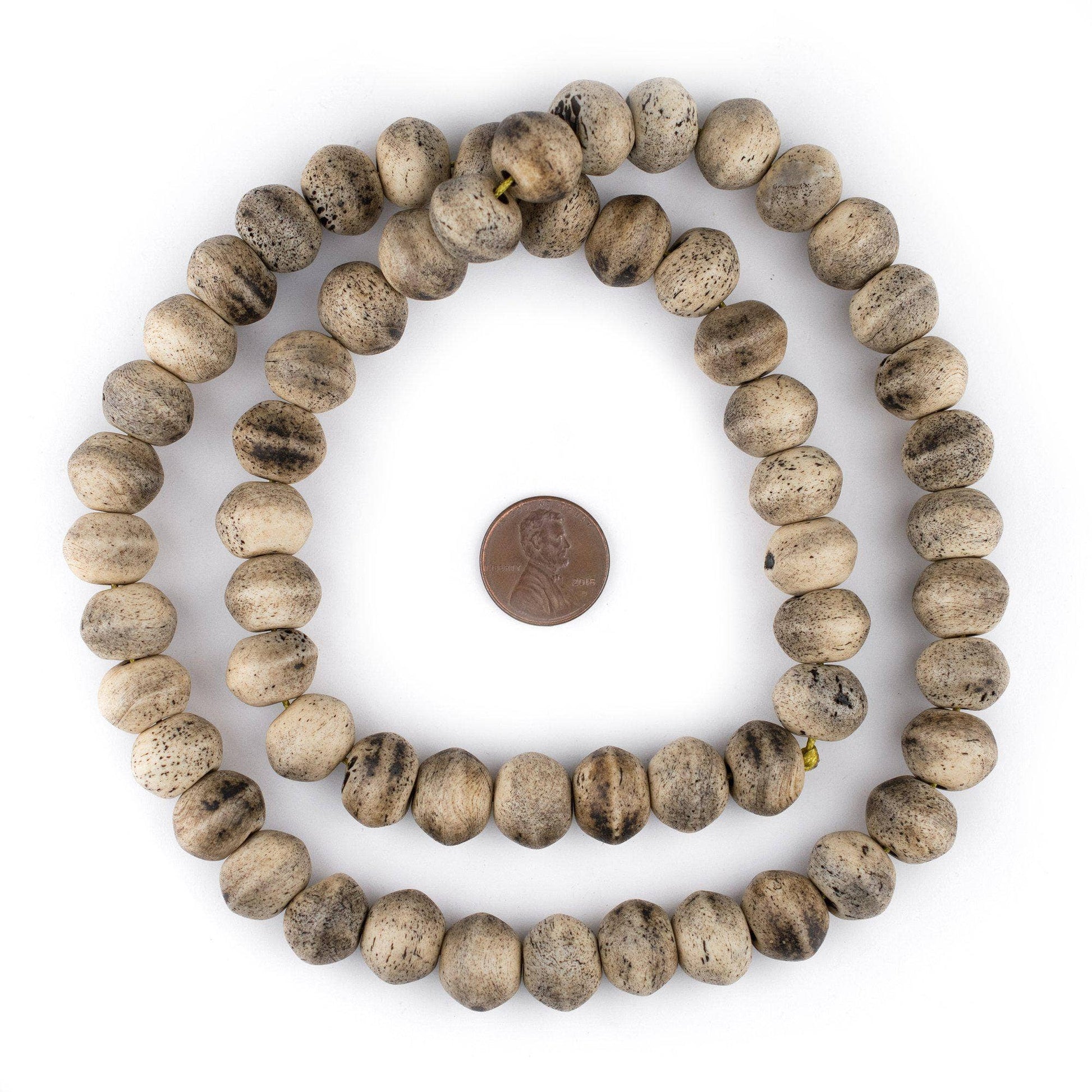 Made in Nepal, each bone bead is unique with natural variations to the rustic grey color. Pair them with a bowl, tray, vase, or stack of books for a complete look.