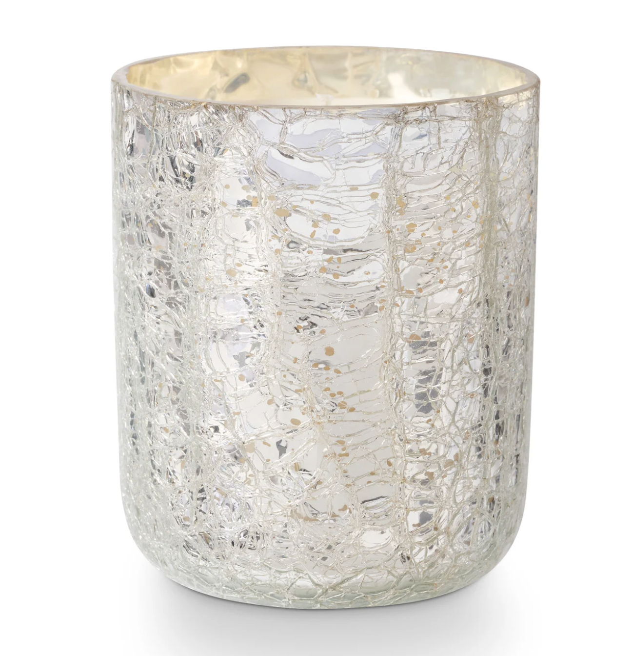 Dimensions: Small boxed crackle glass candle 2.3" x 2.3"