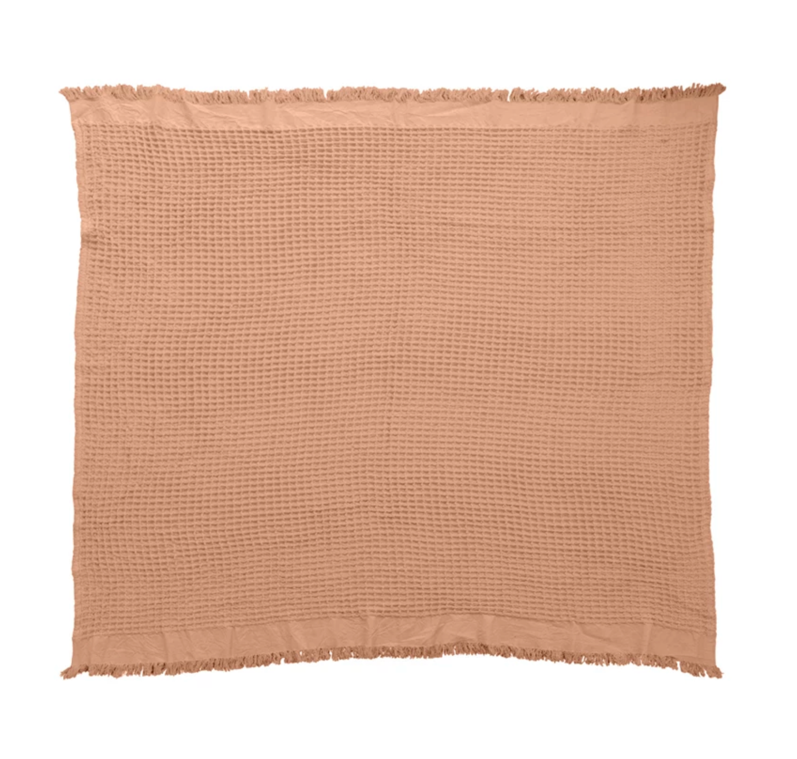 Dimensions: 60"L x 50"W Cotton Waffle Weave Throw with fringe detail