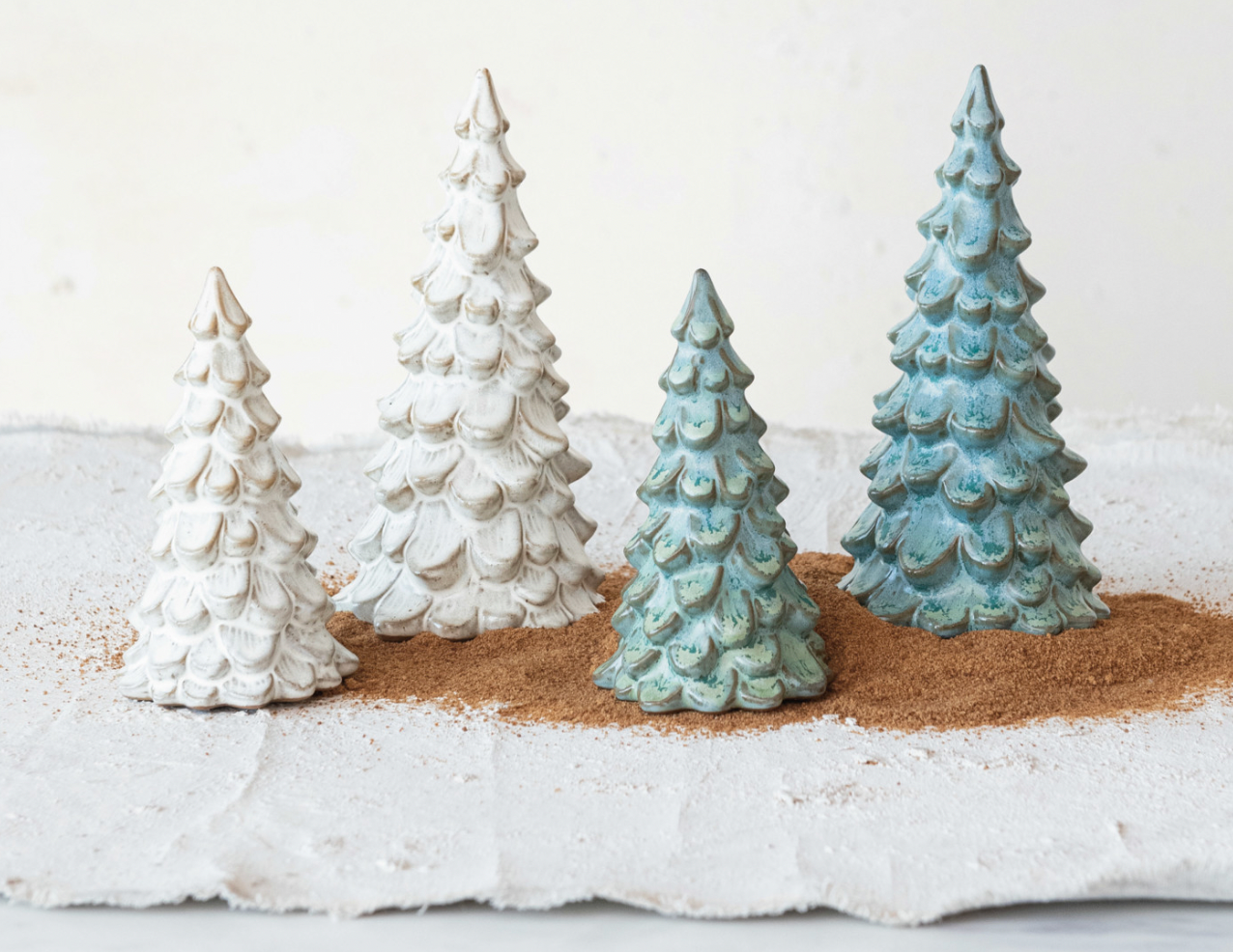 Small: 3" Round x 5.5"H Stoneware Tree, Reactive Glaze, Cream Color (Each One Will Vary)