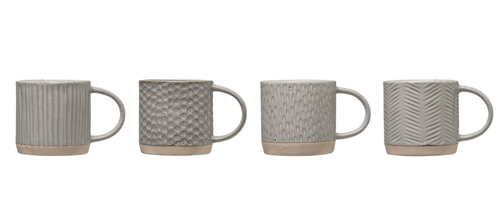 Indulge in the tranquility of sipping a hot drink from our Debossed Stoneware Mugs. Each mug features a unique debossed pattern, adding visual appeal to your beverage experience. Share this luxurious moment with loved ones over coffee, tea, or cocoa. Choose from 4 styles for a truly elevated experience.
