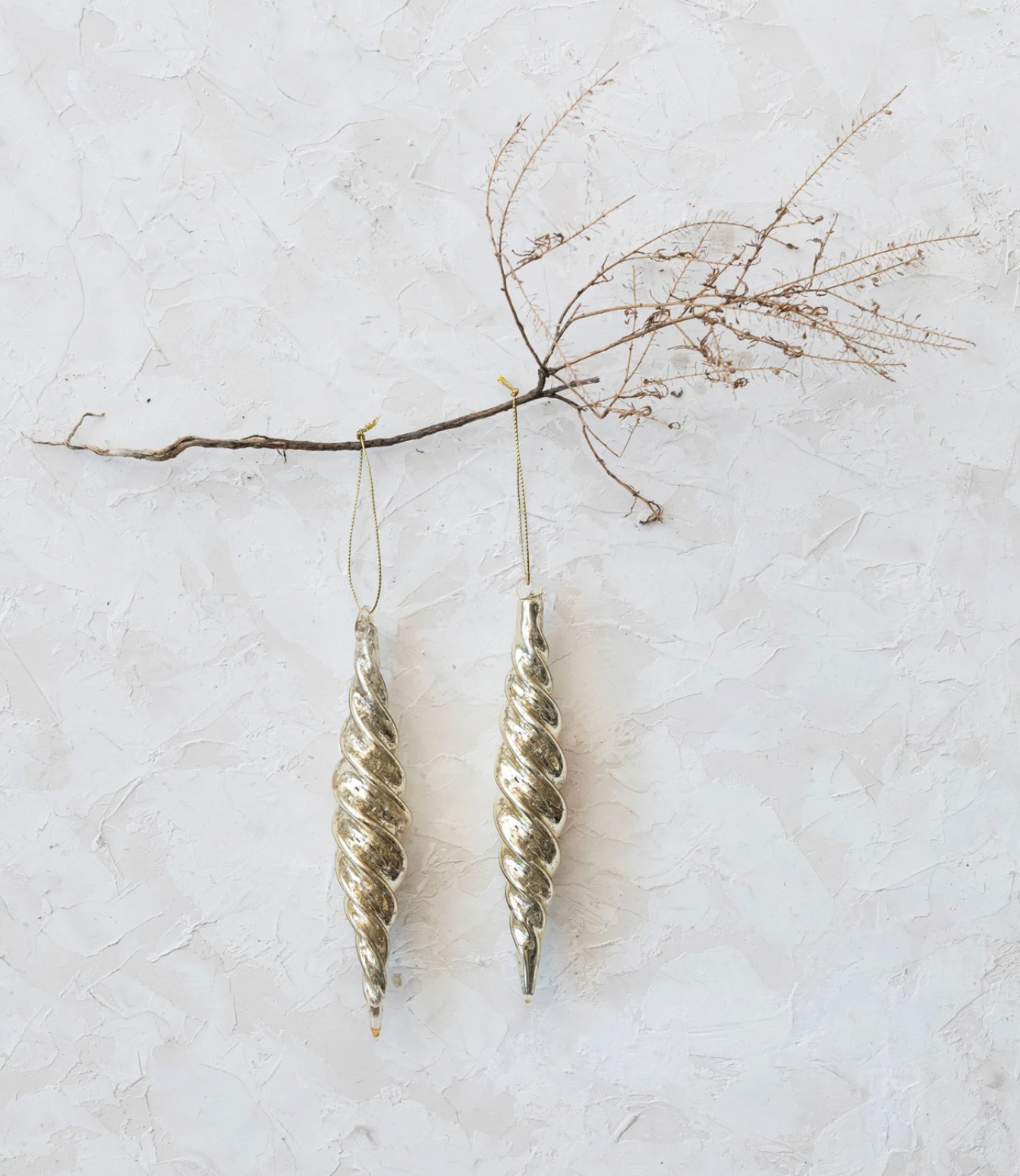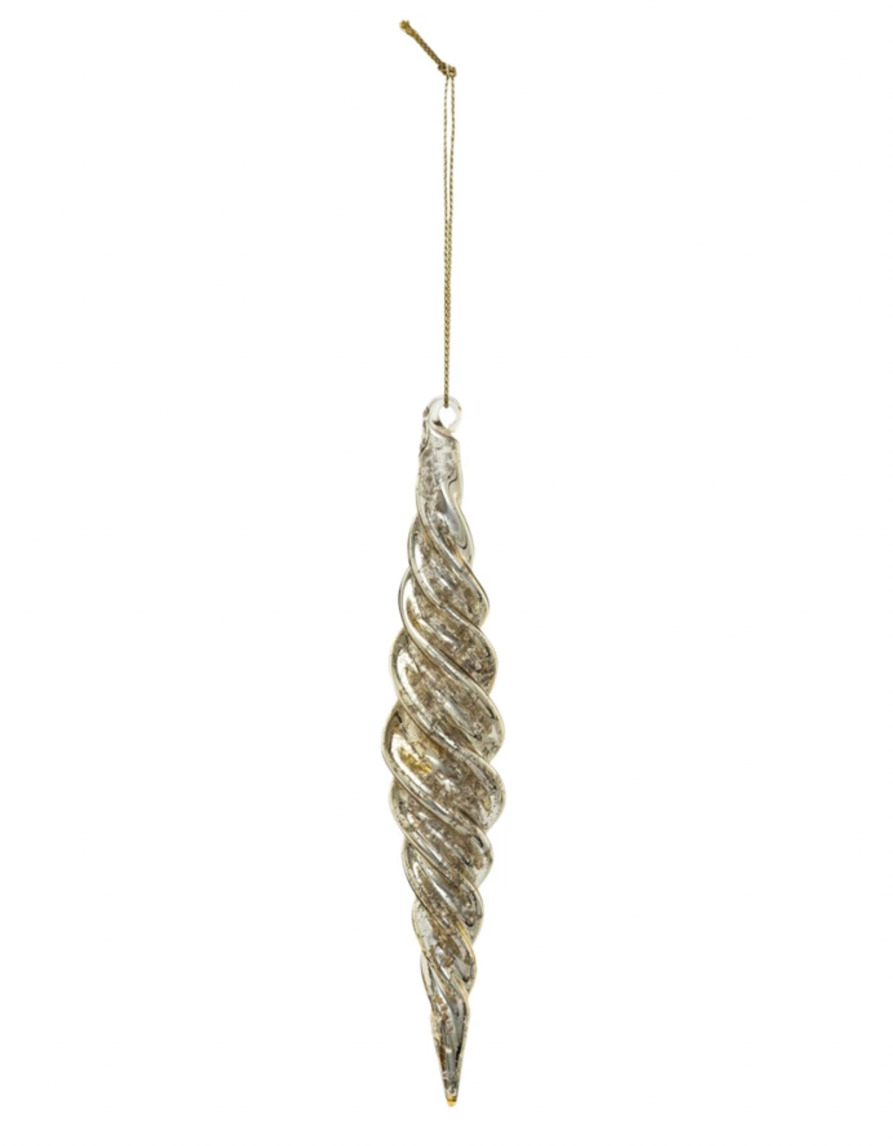 Dimensions: 7"H Glass Spiral Ornament, Antique Silver Finish