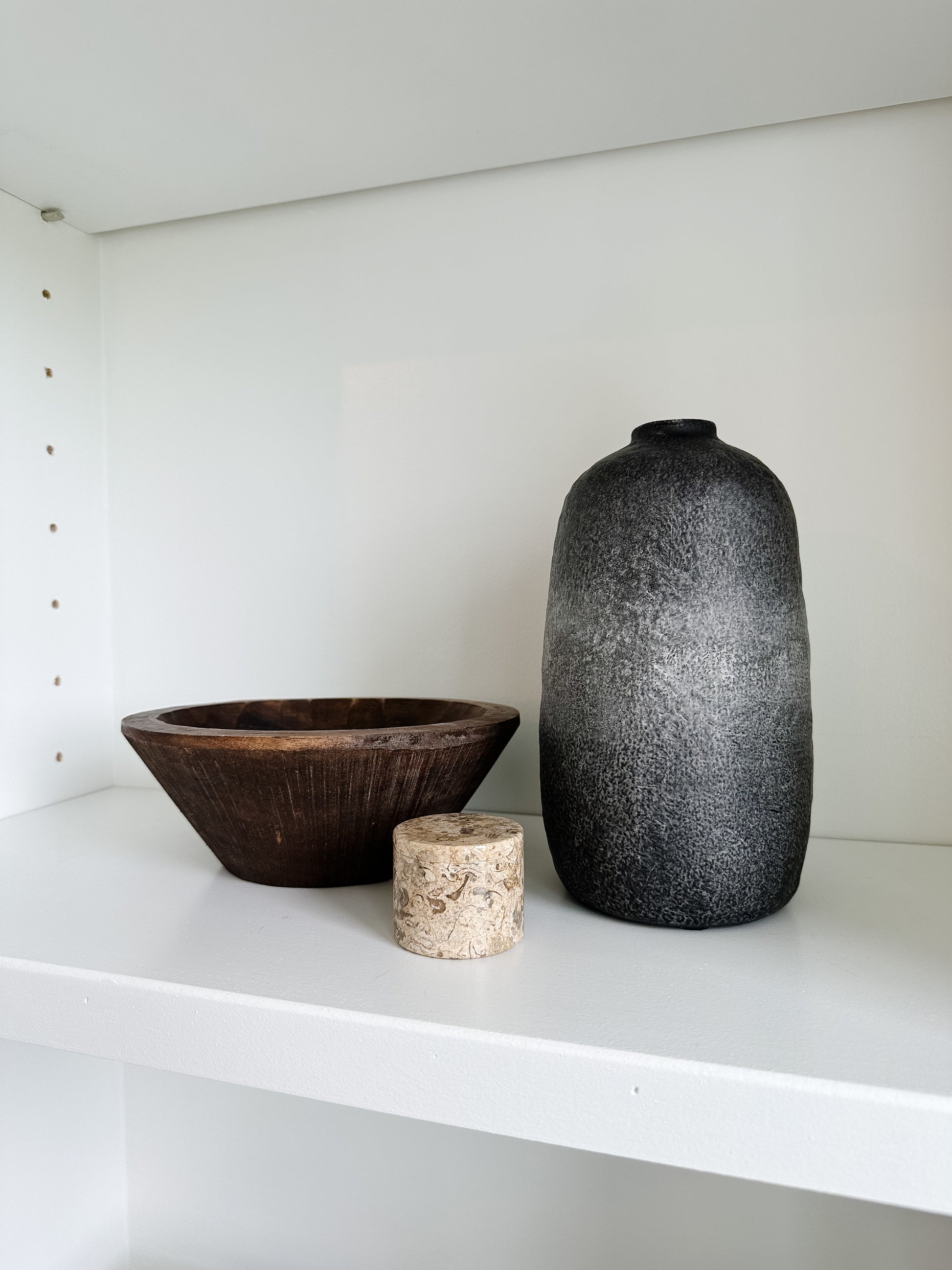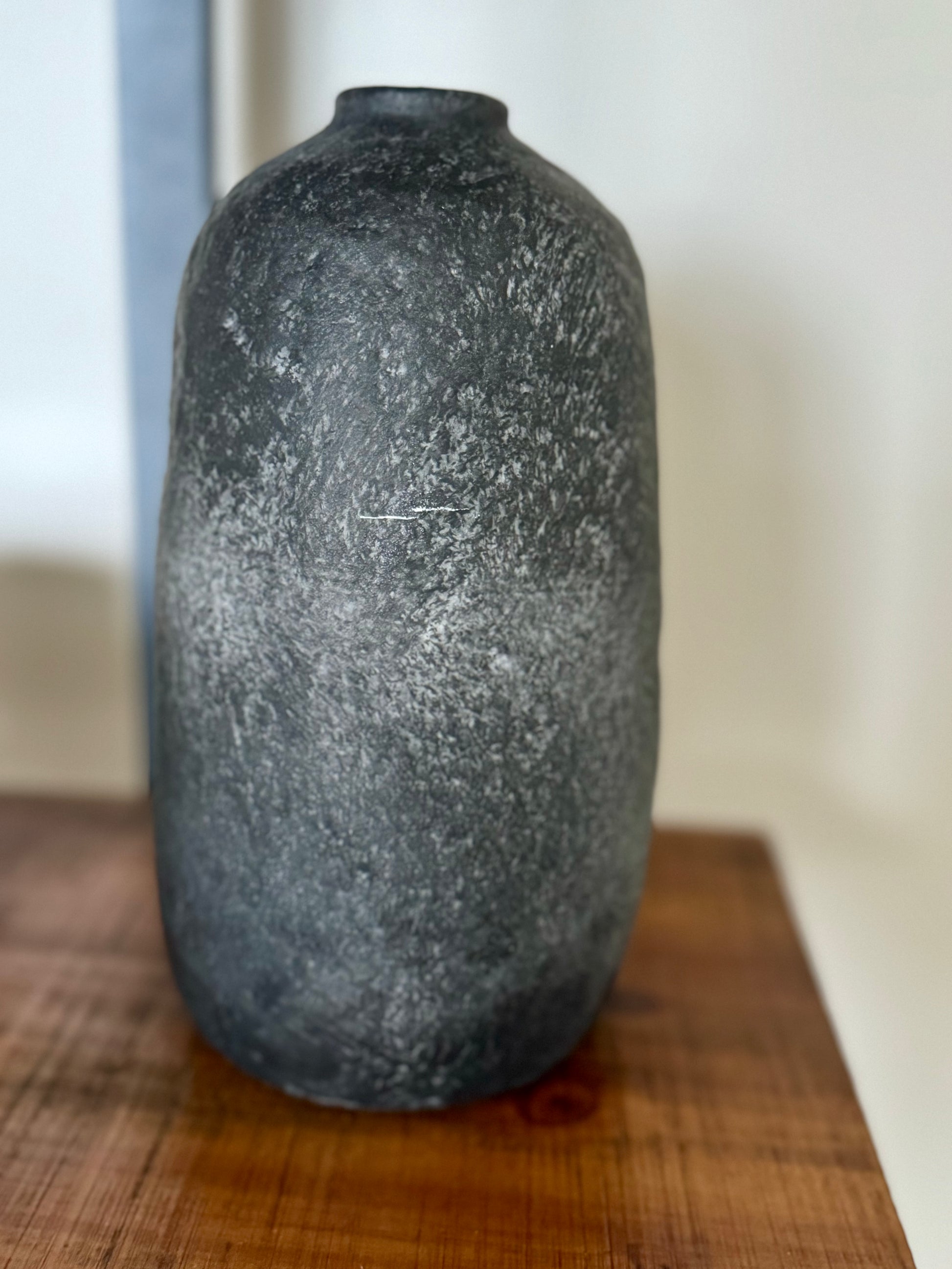 This tall ceramic vase is a beautiful charcoal color and finished to give it a rustic, distressed finish. **Note that item is finally sale and has a small scratch**