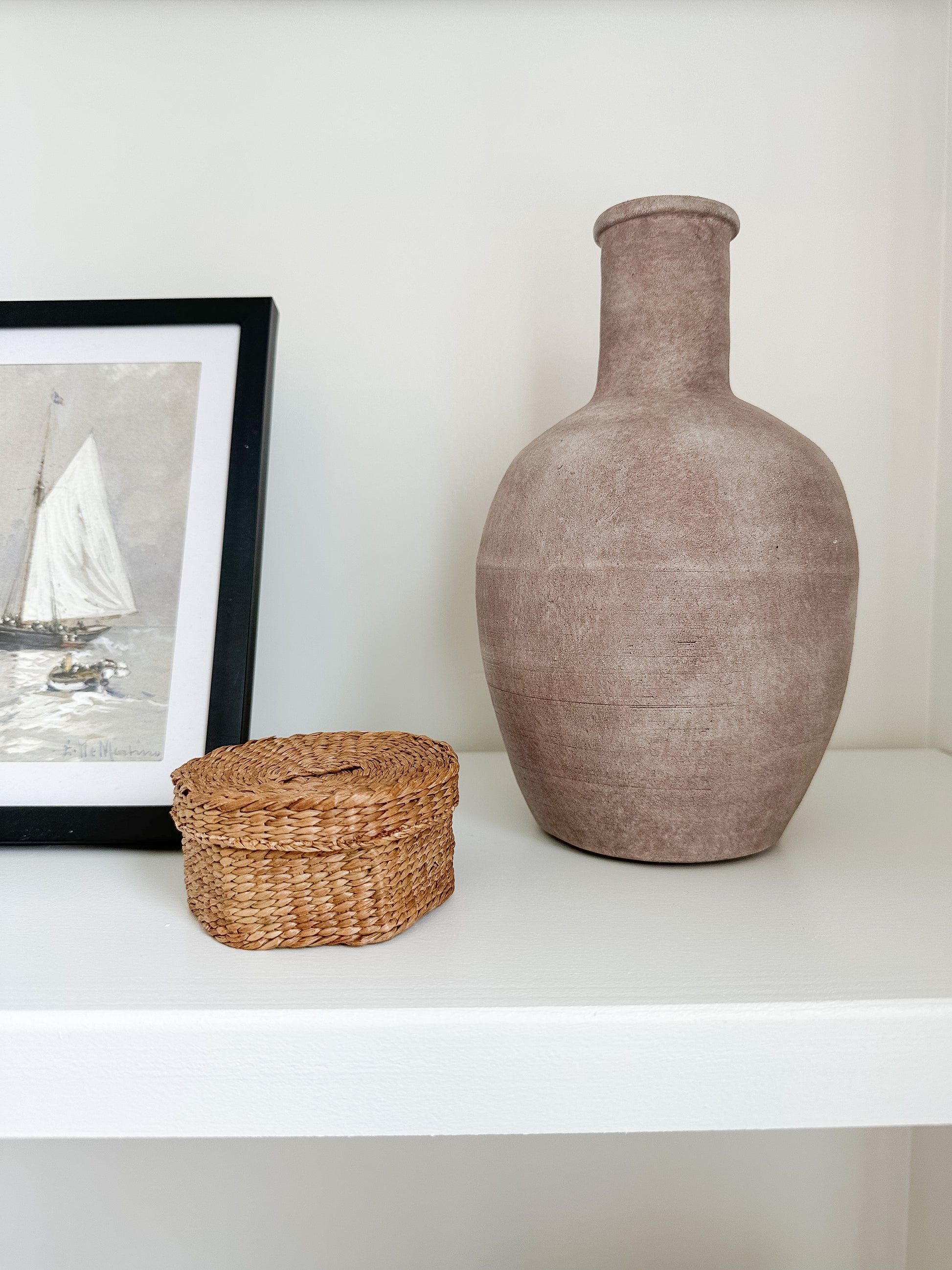 A timeless material, terracotta continues to be a staple in transitional decor. This vase will add a focal element to a table, countertop, or shelf.