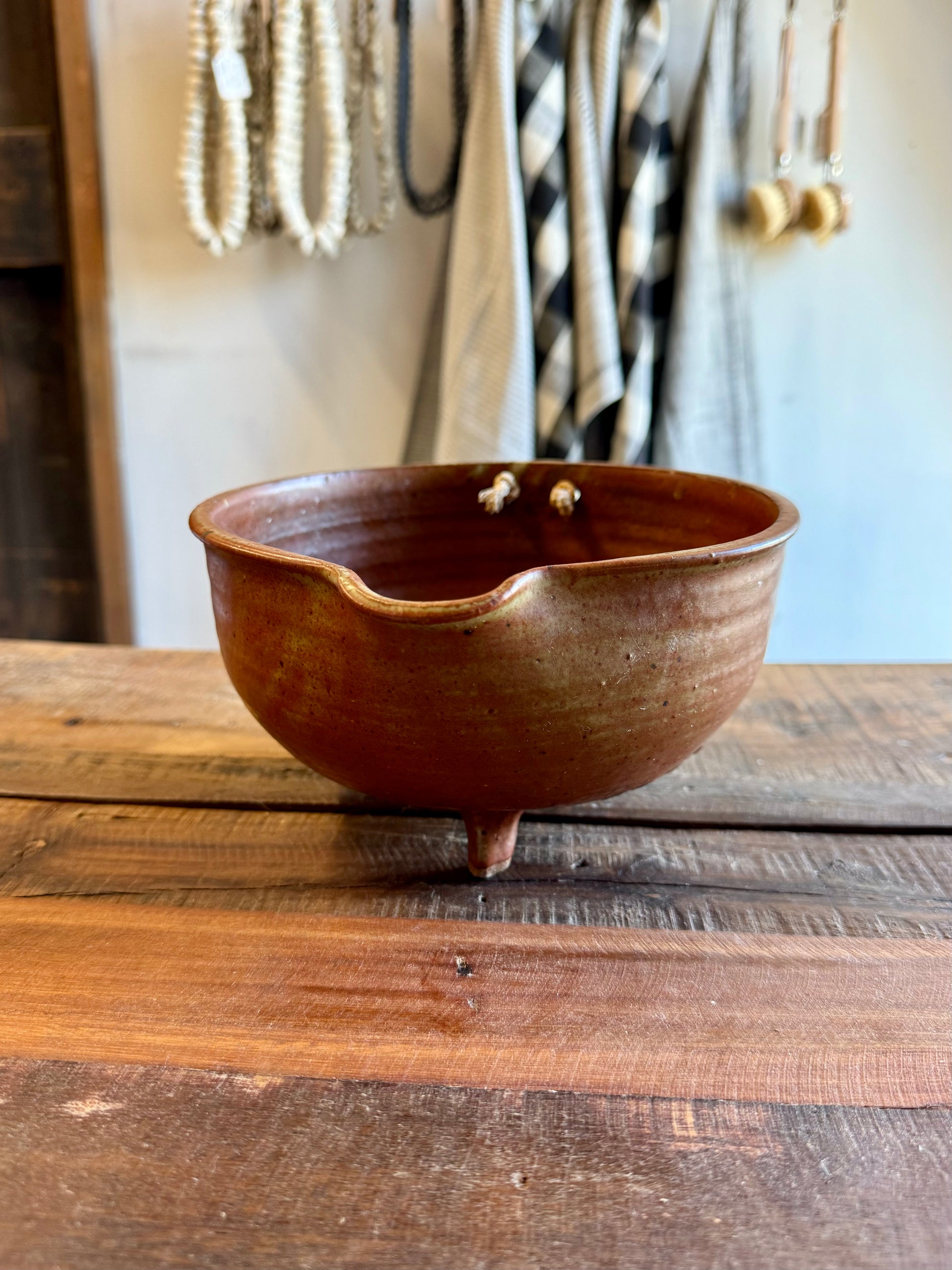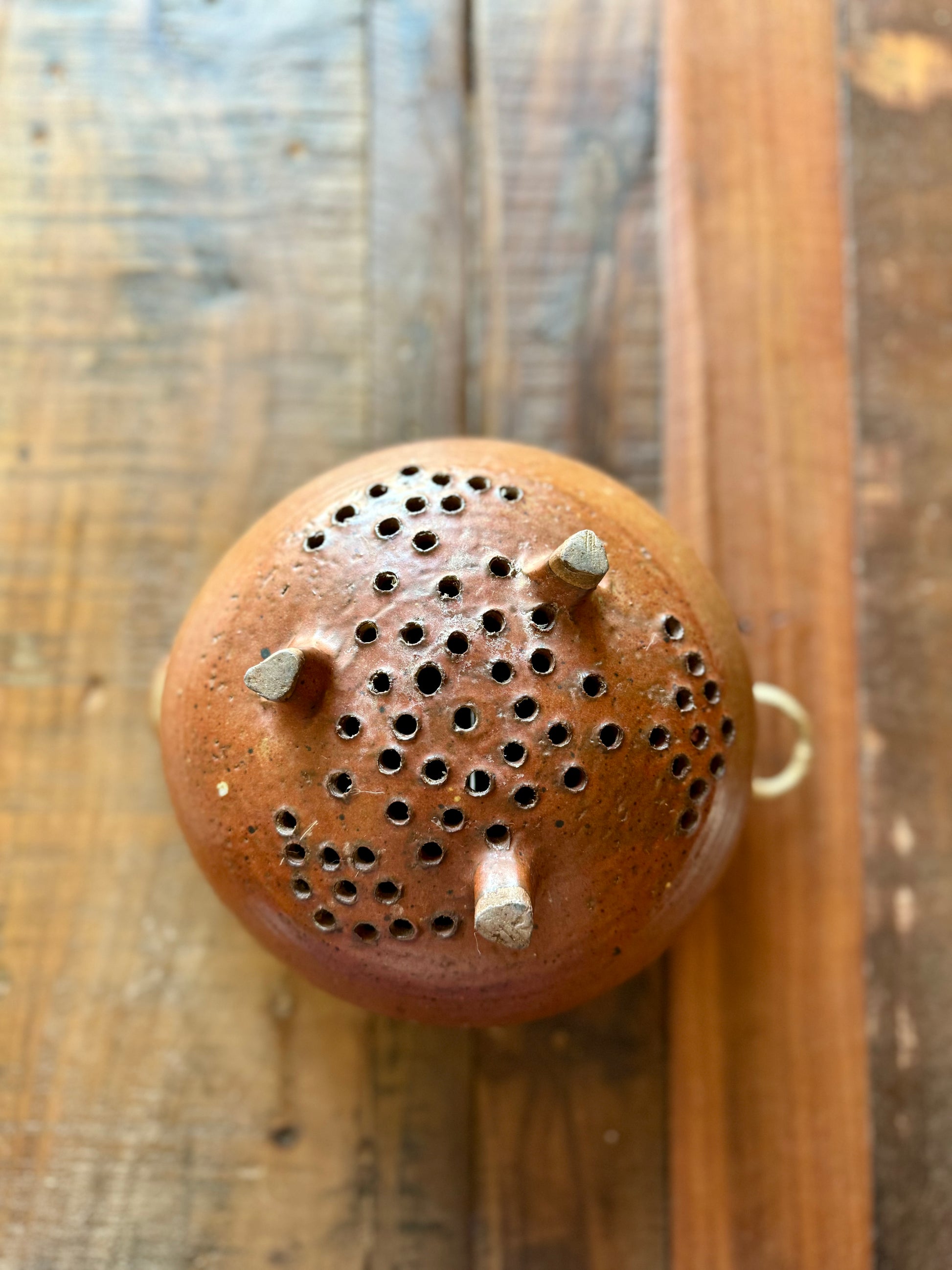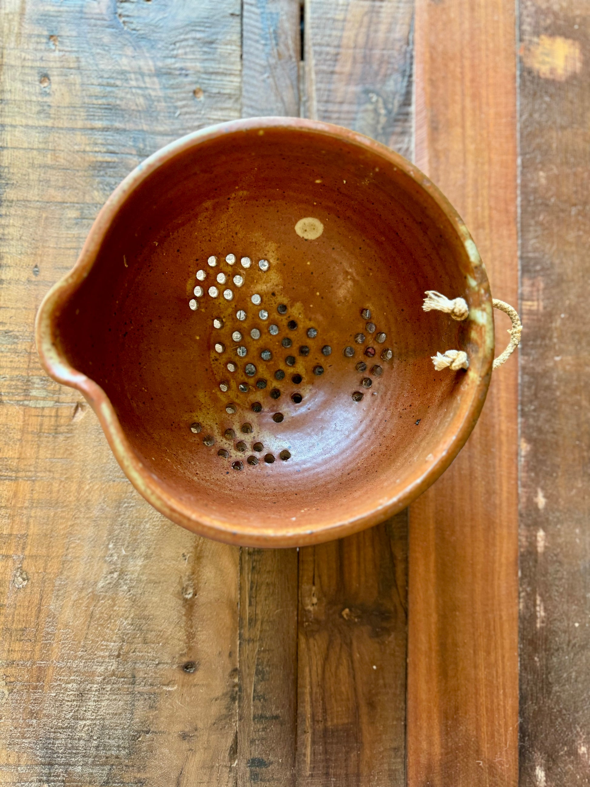 Add a unique vintage charm to your kitchen with this one-of-a-kind handmade stoneware berry colander! This lovely piece is perfect for draining small berries or for adding a special touch to any kitchen-related display.