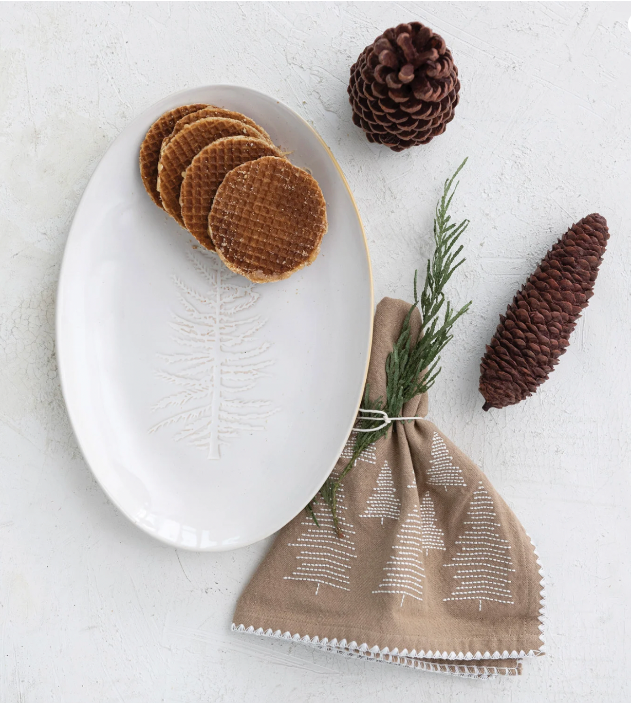 Elevate your holiday gatherings with our White Holiday Tree Platter. Crafted from premium stoneware, this elegant platter showcases a debossed tree design in white. Perfect for displaying your delicious treats, it's the perfect addition to any festive spread. Get ready to impress with our exclusive collection of whimsical serveware.