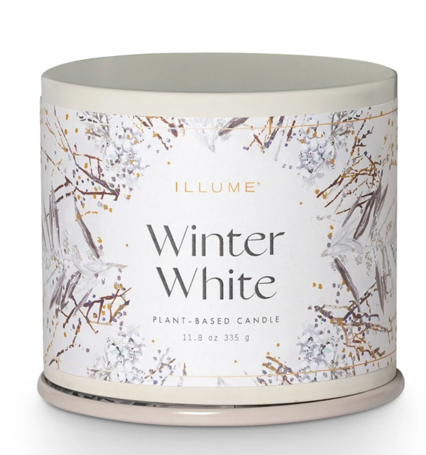Ignite your senses with our Winter White Candle. With a luxurious blend of plant-based soy wax and a refreshing scent of cool cardamom, evergreen, and sparkling citrus, this candle is perfectly housed in an elegant tin with a textured wrap label and metallic details. Enjoy up to 50 hours of warm, illuminating light. Made in the USA.